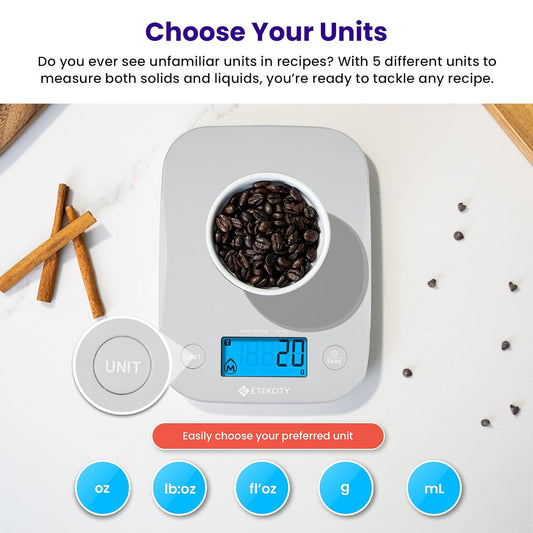 Food Kitchen Scale, Digital Weight Grams and Oz for Cooking, Baking, Meal Prep, and Diet, Medium, Gray