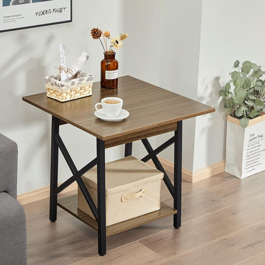 End Table Large 24 Inch Farmhouse Industrial Design Side Table Nightstand with Storage Shelf for Living Room, Easy Assembly, Espresso